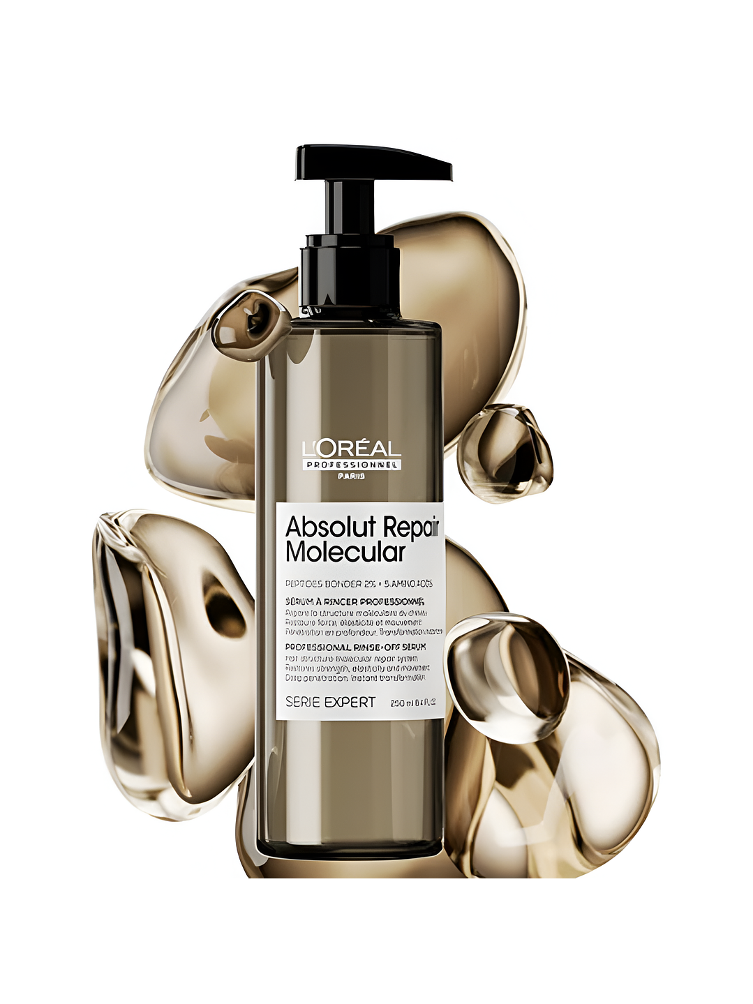Para obtener resultados óptimos, aplica a continuación Absolut Repair Molecular sérum con enjuague y mascarilla sin enjuague.
