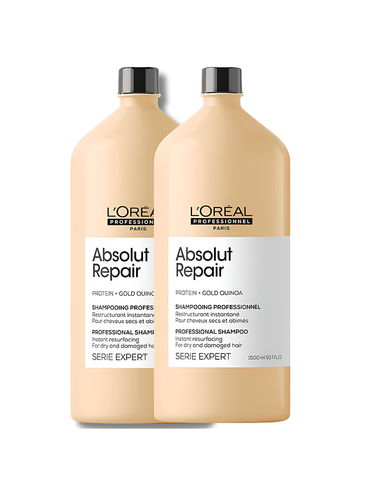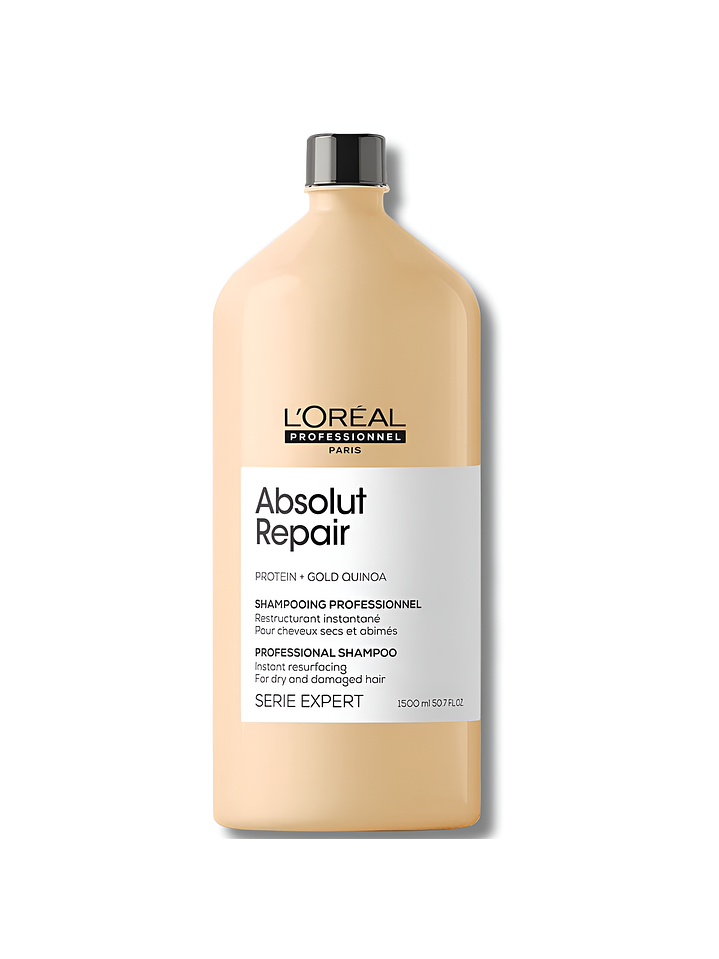 SHAMPOO EXPERT ABSOLUT REPAIR GOLD de L'ORÉAL rejuvenecedor que limpia y reestructura instantáneamente los cabellos debilitados, muy castigados y quebradizos sin apelmazar.