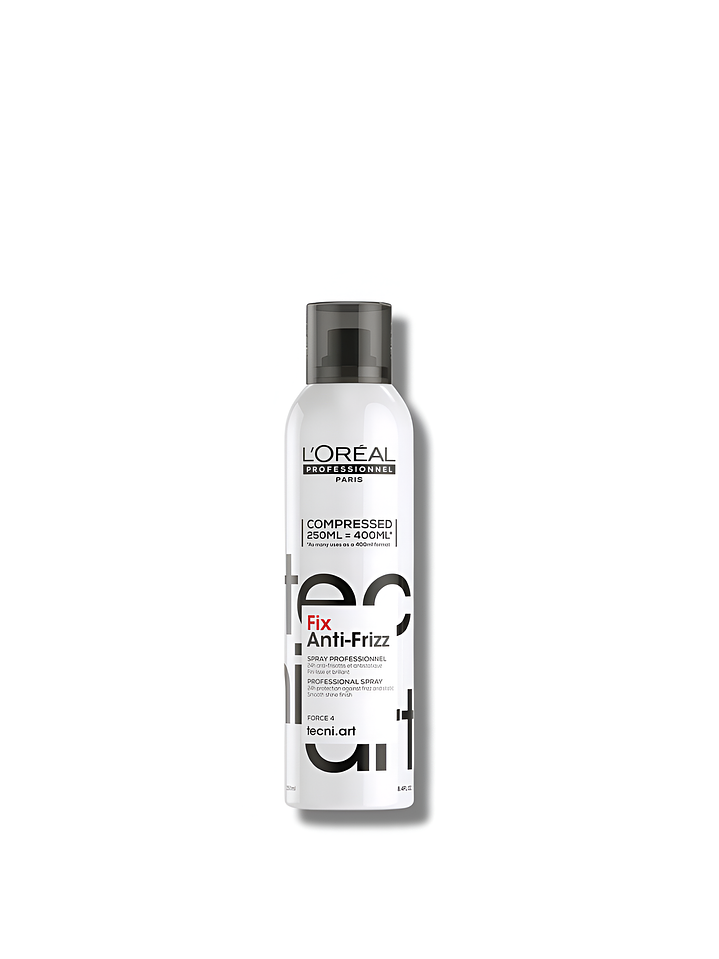 El spray Air Fix de Tecni Art es una laca que aporta una fijación súper fuerte, duradera, con un secado rápido y sin encrespamiento.Resultado extra fuerte de larga duración. MODO DE USO Puede aplicarse en la raíz húmeda para aportar volumen. En el pelo seco, aporta fijación extrafuerte y brillo.