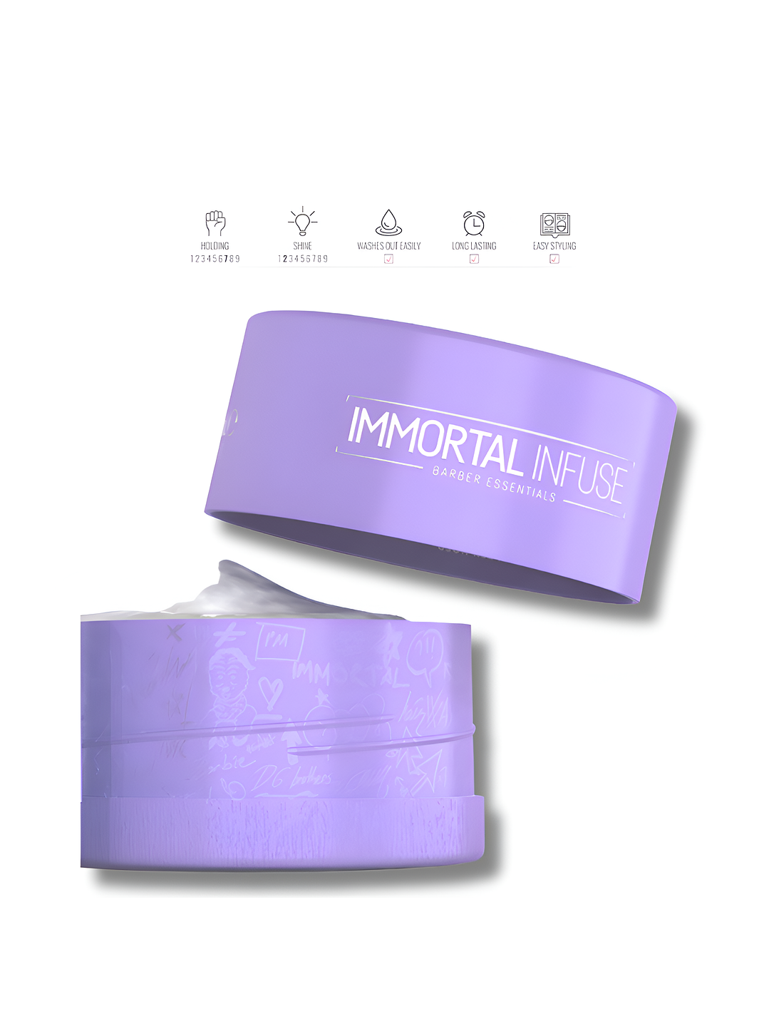 Instrucciones: Aplique un poco de cera sobre el cabello húmedo o seco.